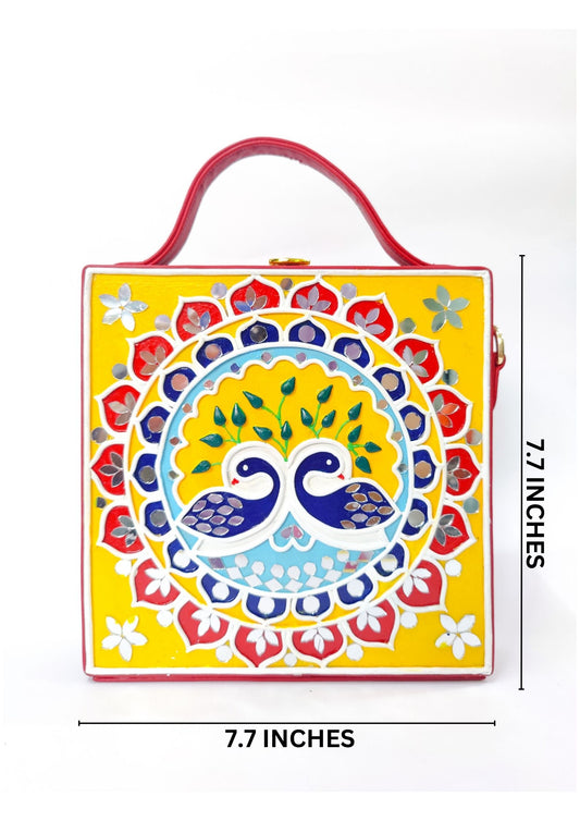 Mandala Lippan Art Box Sling Bag | Handcrafted Mirror Work Sling