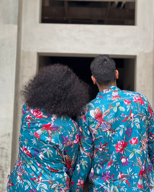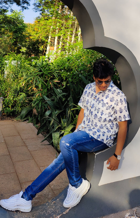 Blue Floral Motif Unisex Full Sleeves Shirt