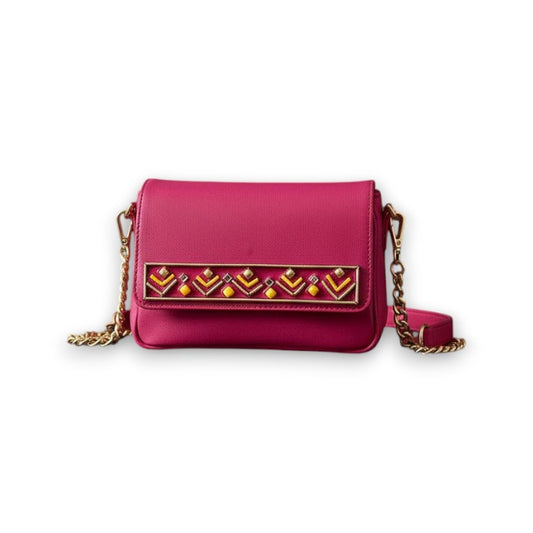 Pink Party Mini Lippan Art Handcrafted Sling