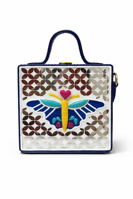 Mini Butterfly Lippan Art Handcrafted Square Box Bag