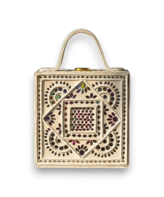 Mini Bettle Lippan Art Handcrafted Square Box Bag