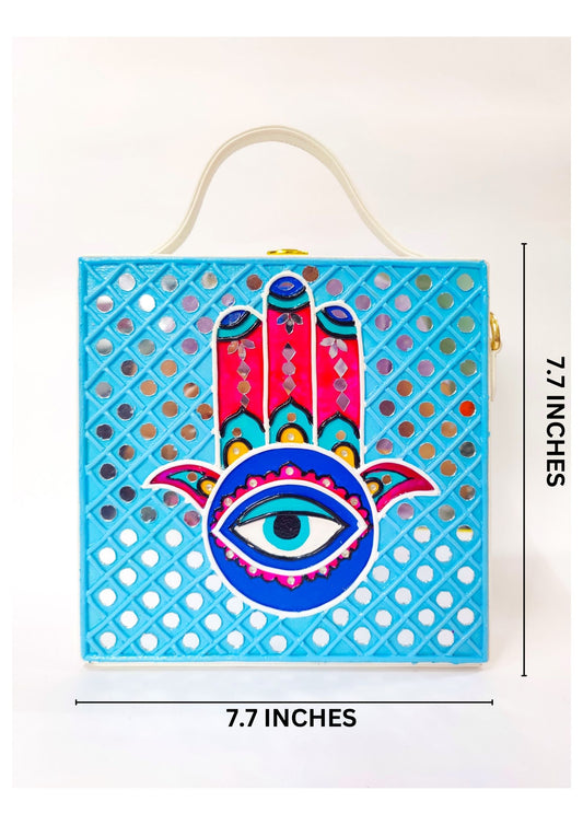 Mini Hamsa Lippan Art Handcrafted Square Box Bag