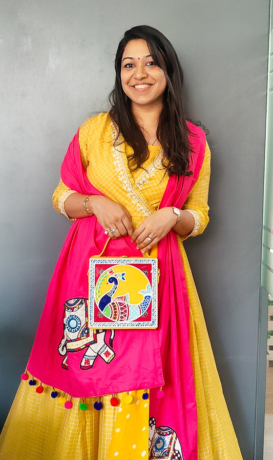 GanpatiJi Lippan Art Handcrafted Potli Square Bag