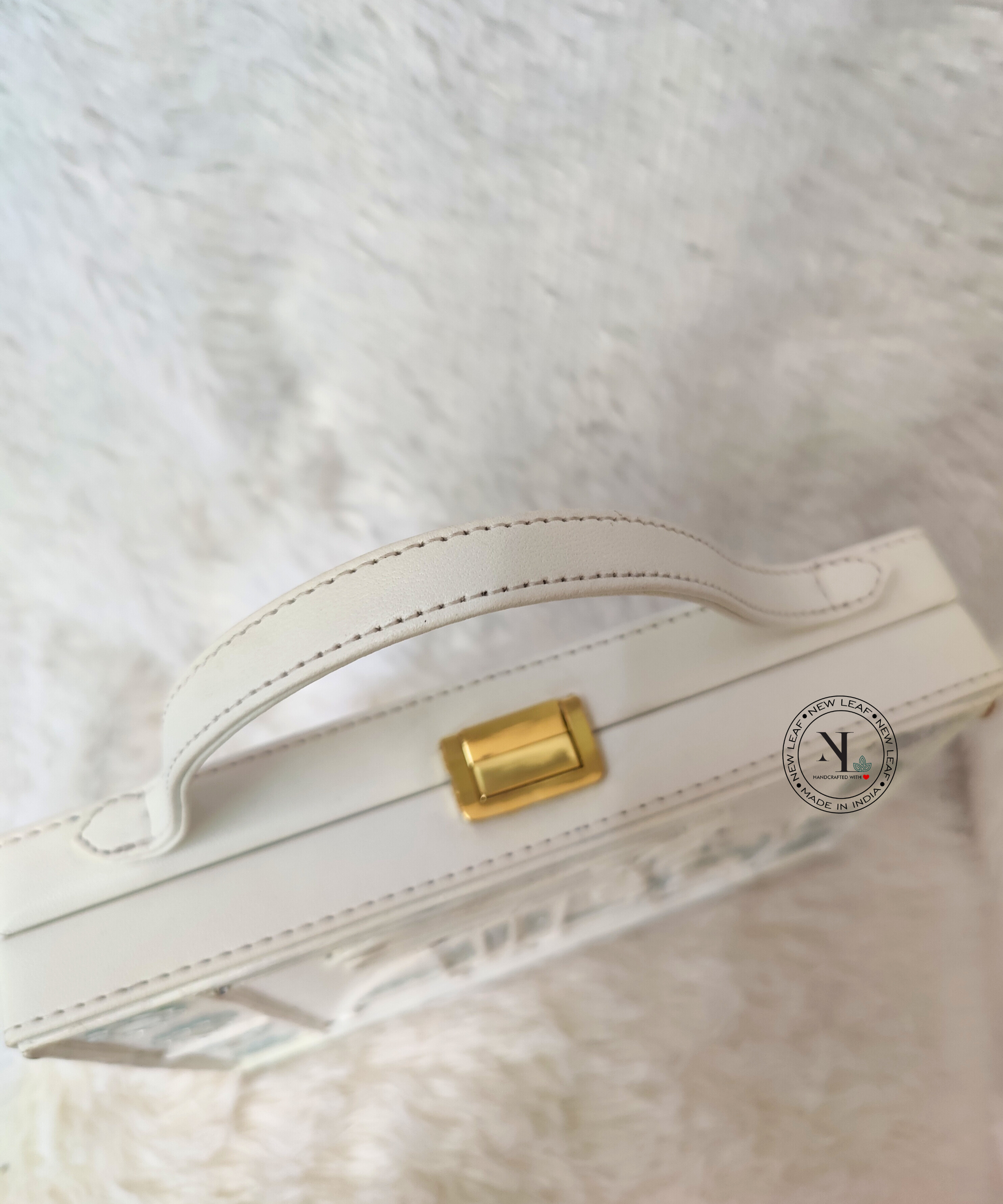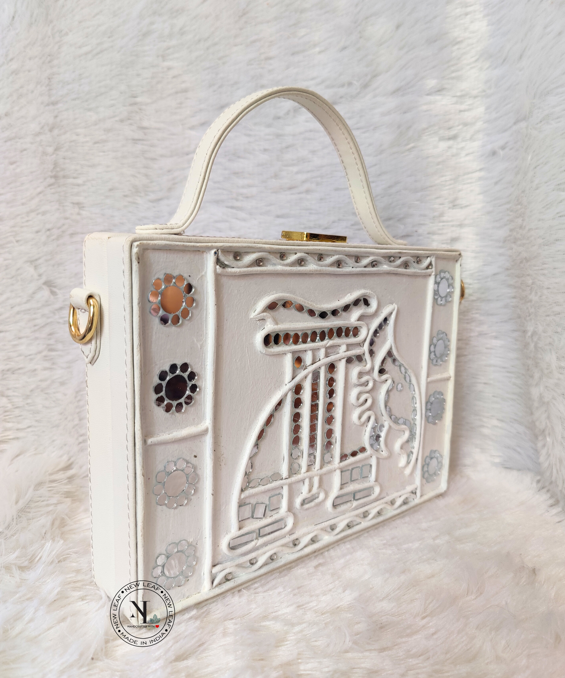 Elephant White Lippan Art Handcrafted Rectangle Box Bag