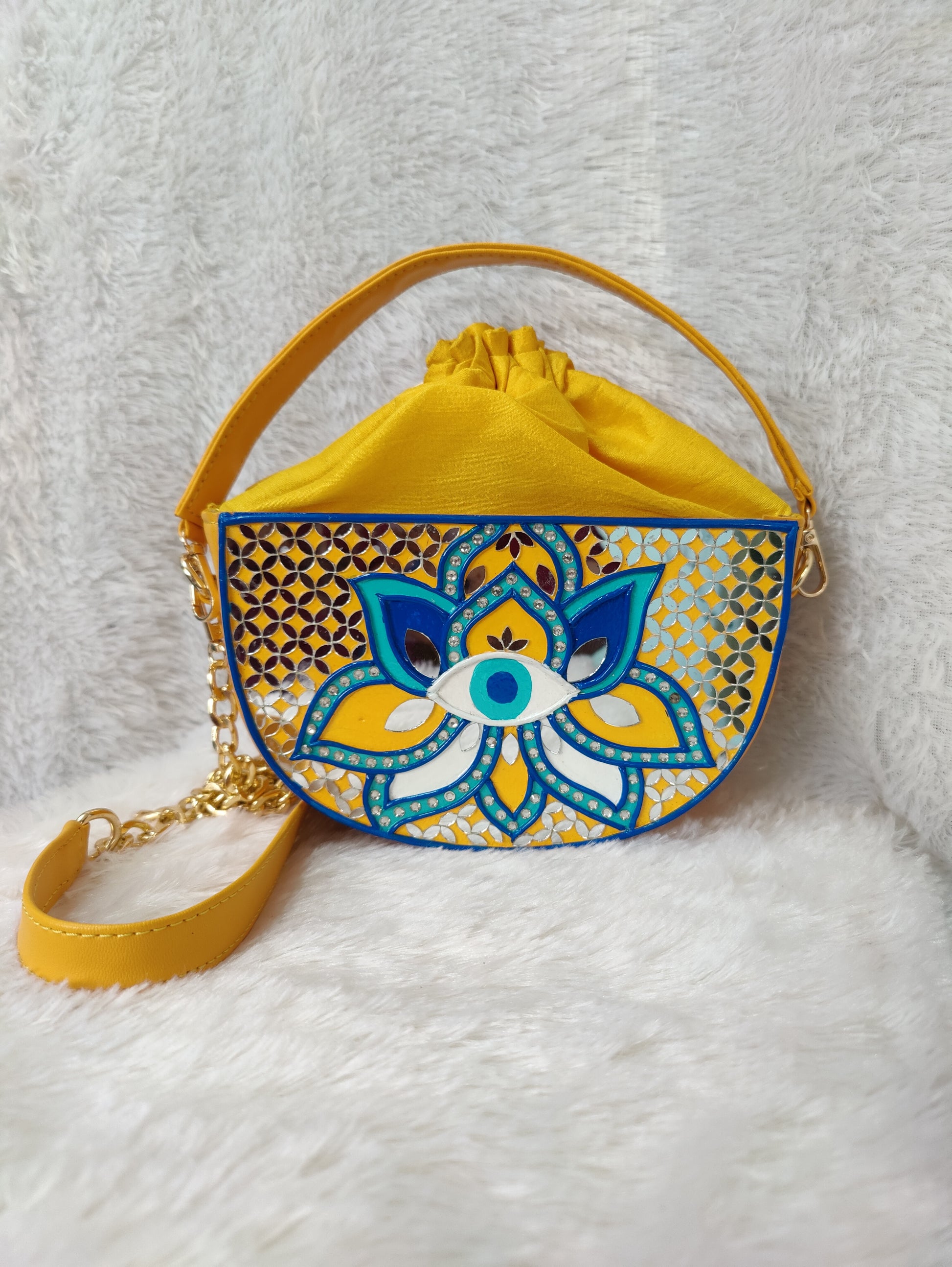 Evil Eye Semi Circle Lippan Art Handcrafted Potli Bag with Sling