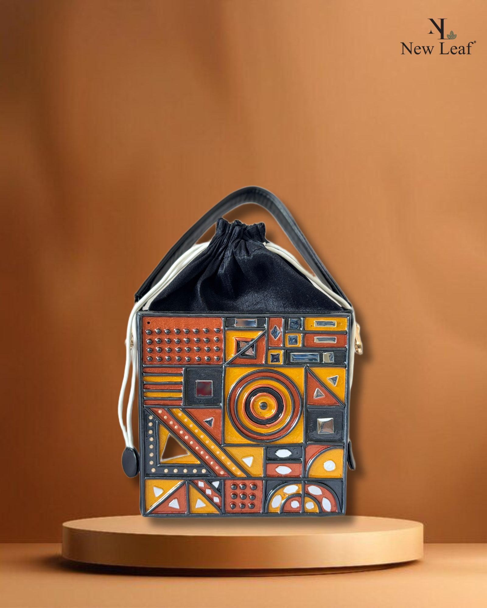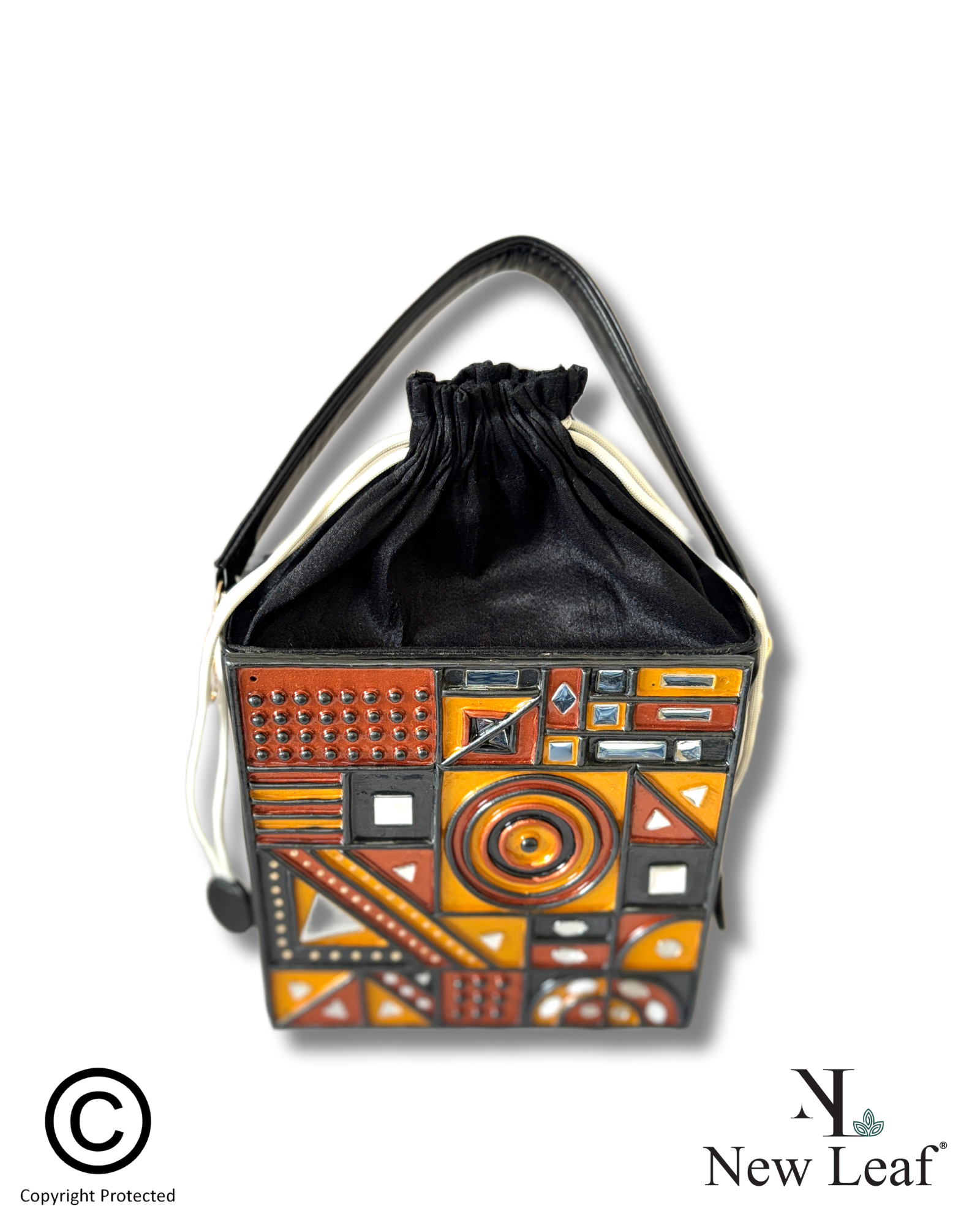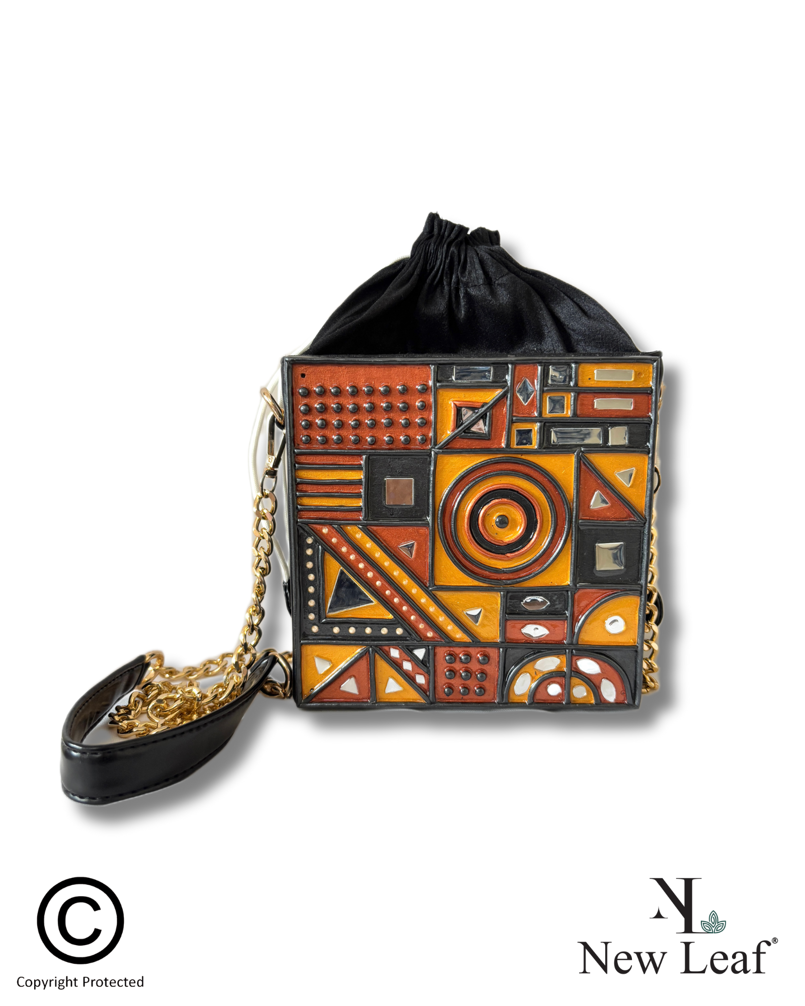 Gilded Mirage – Black Gold Lippan Handcrafted Potli