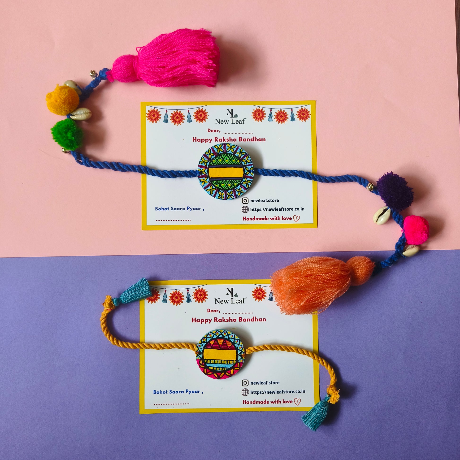 Each Rakhi is a unique piece of art, carefully hand-painted with intricate motifs and patterns that represent the diverse folk art styles found across India.