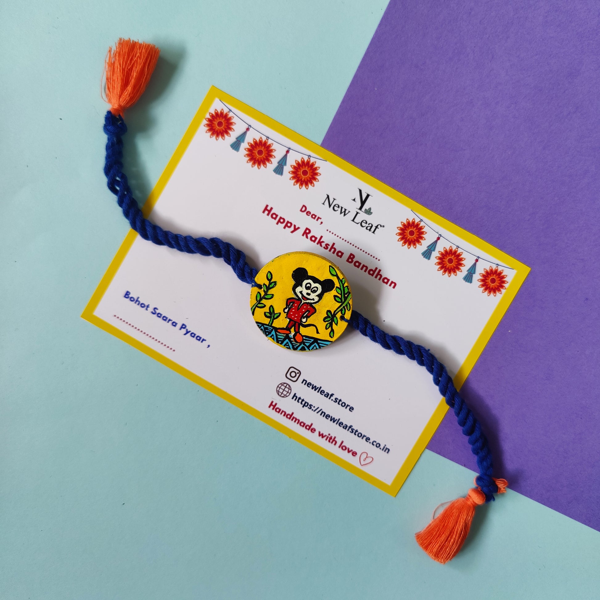 Each Rakhi is a unique piece of art, carefully hand-painted with intricate motifs, patterns that represent the diverse folk art styles found across India. Combining cute cartoon characters with indian folk art style makes it more interesting.