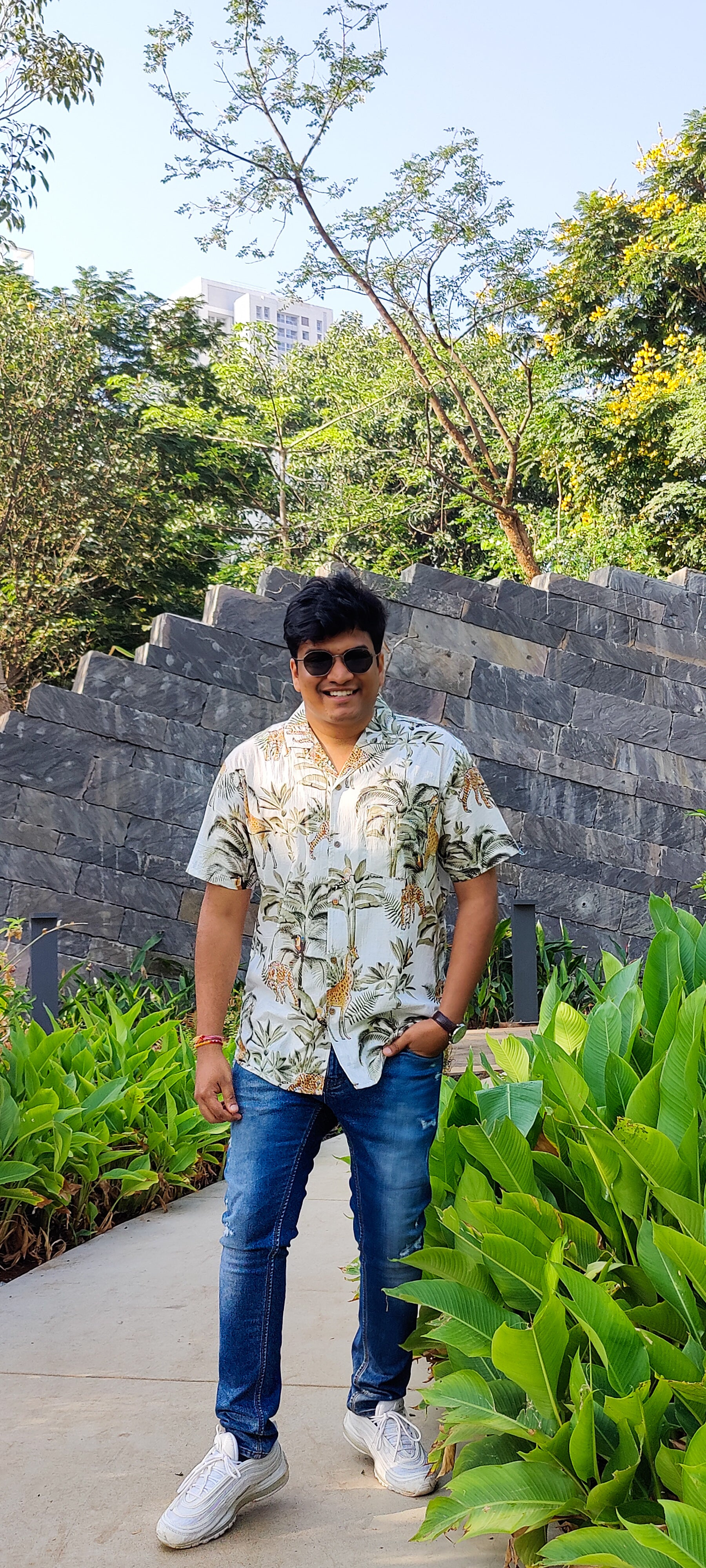 White Jungle Cuban Collar unisex Shirt .