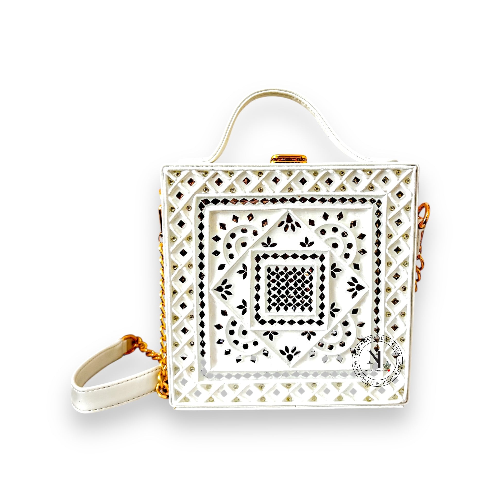 White Lippan Art Handcrafted Box Bag